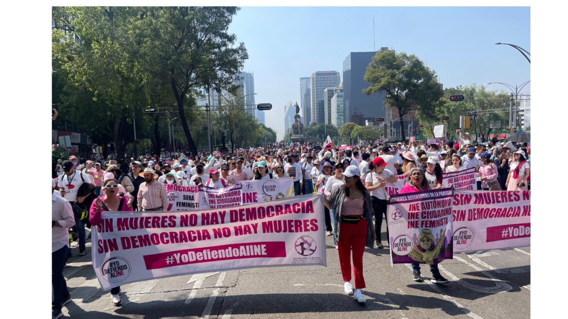 La democracia será feminista, o no será, corearon mientras llamaron a más mujeres a unirse al contingente que llegó hasta el Monumento a la Revolución al lado de miles de mexicanas y mexicanos que abarrotaron la plaza pública y las calles aledañas contra la regresión antidemocrática que propone con su reforma electoral el ejecutivo federal.