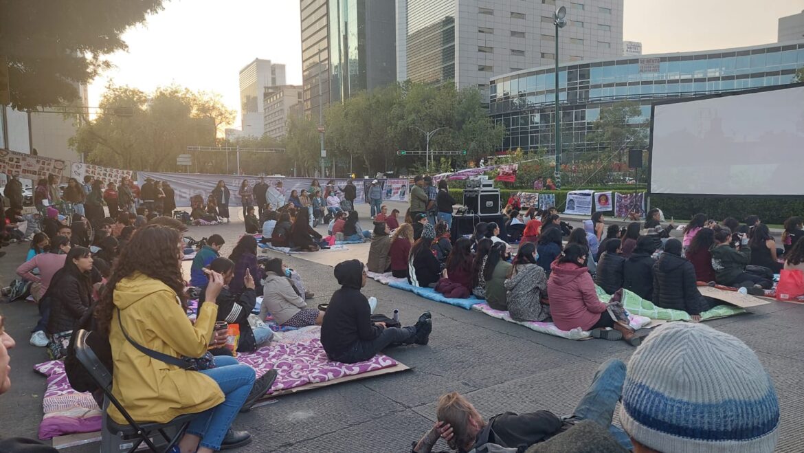 Después de tomar la palabra expresando desde el dolor y la digna rabia sus historias de búsqueda de sus seres queridos contra la indiferencia y corrupción de los gobiernos, exhibieron con un proyector y pantalla dispuestos por las colectivas el filme/documental «Ruido», de la directora Natalia Beristáin, donde se narra la historia de una madre mexicana que busca a su hija desaparecida, enfrentando como muchas otras madres, peligros y escenarios inhumanos de búsqueda entre clandestinidad, negligencia y crimen organizado, con la complicidad y el lucro de funcionarios de seguridad.