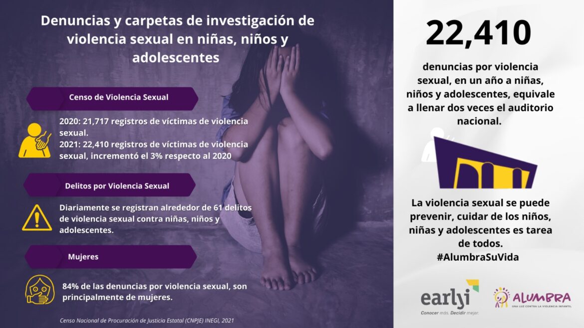 Los datos estadísticos del Censo arrojaron que durante el 2021, diariamente se cometieron 61 delitos de violencia sexual contra niñas, niños y adolescentes, de los cuales seis fueron niñas y niños menores de cinco años.