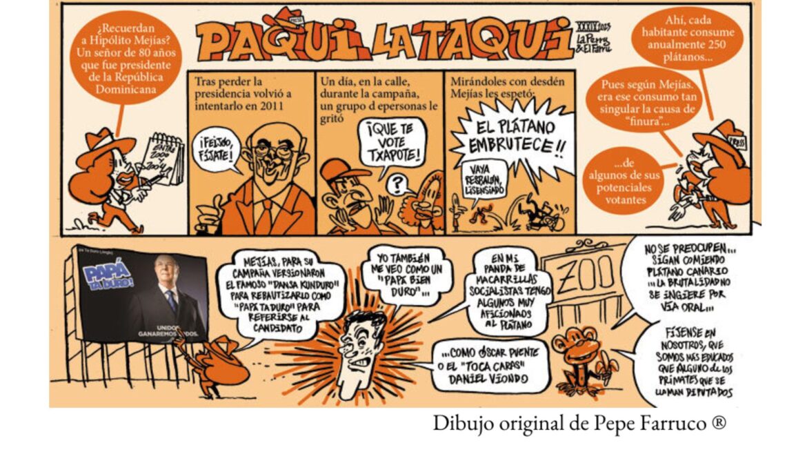 No es baladí que un candidato a la presidencia diga semejante cosa en un país en el que de media se consumen casi siete millones de plátanos al año, a razón de 250 plátanos al año por habitante dominicano. Y el ex presidente tenía claro que ese consumo tan singular de la citada fruta tropical era la culpable de la falta de “finura” de algunos de sus potenciales votantes.