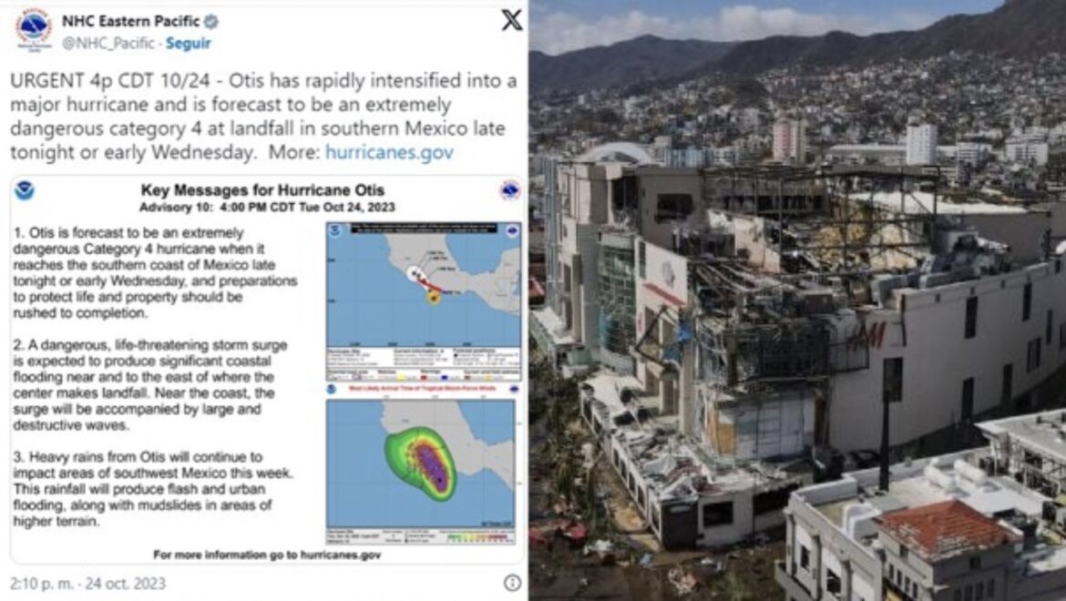 A una semana del mayor desastre natural provocado por el impacto del Huracán Otis, descrito por el Centro Nacional de Huracanes como un “escenario de pesadilla“, que ha dejado comunidades muy afectadas, la normalidad en Acapulco, está muy lejos de alcanzarse. La destrucción de la infraestructura de hoteles, viviendas y comunicaciones es el retrato de la desolación, el reconocido internacionalmente paraíso del Pacífico, está devastado.