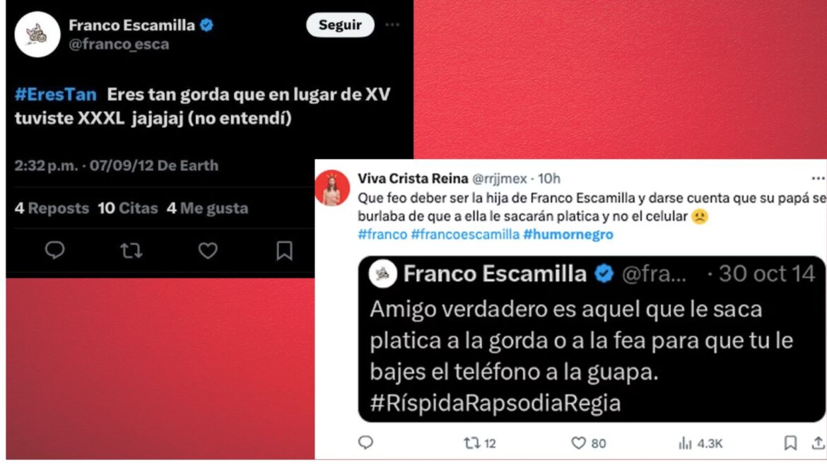 Franco Escamilla se ha visto envuelto en una polémica reciente tras la publicación de varios videos en redes sociales de la fiesta de XV años de su hija Azul; en los videos, se puede ver a la familia Escamilla disfrutando del evento, incluyendo un baile padre e hija. Sin embargo, algunos usuarios de internet han aprovechado la oportunidad para hacerle a Azul comentarios que denominan “bromas” basadas en las cosas que su padre ha dicho en el pasado sobre la gordura.