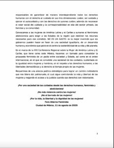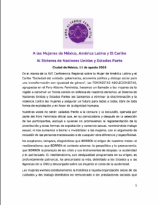 La Conferencia Regional de la Mujer de la CEPAL es uno de los foros más importantes para la discusión y el seguimiento de la agenda de igualdad de género en América Latina y el Caribe. El encuentro busca evaluar los avances y desafíos en la implementación de la Agenda de Género de la región, y tradicionalmente, cuenta con la participación de la sociedad civil que este año se reunió en torno a la agenda de cuidados. El Foro Alterno, en este marco, es visto como la voz de los colectivos feministas y de derechos humanos, a menudo con posturas más críticas y radicales que los gobiernos.